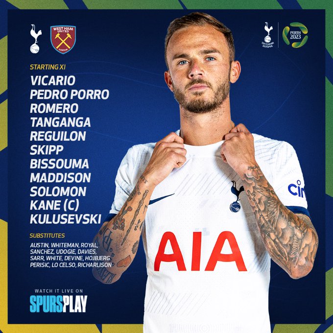 热刺首发:维卡里奥、佩德罗-波罗、罗梅罗、坦甘加、雷吉隆、斯基普、比苏马、麦迪逊、所罗门、凯恩、库卢塞夫斯基