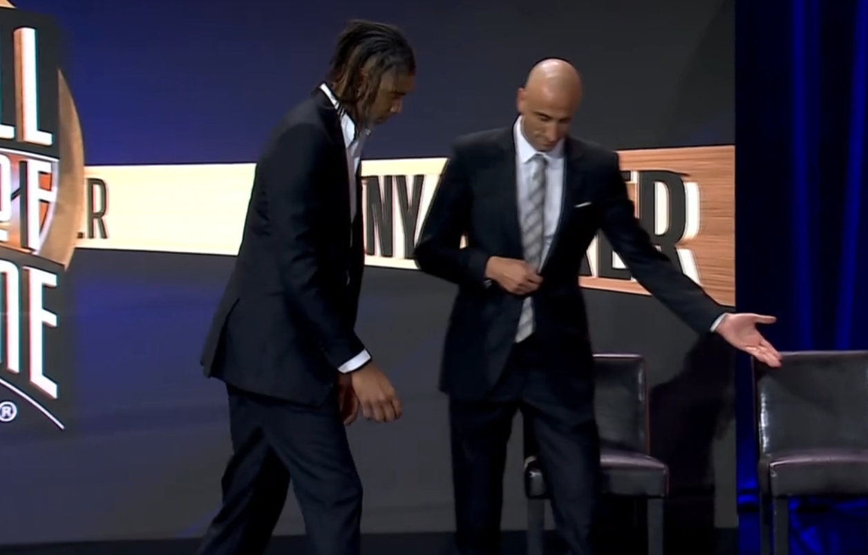 吉诺比利与邓肯一同登台!马努光头锃亮石佛脏辫满头