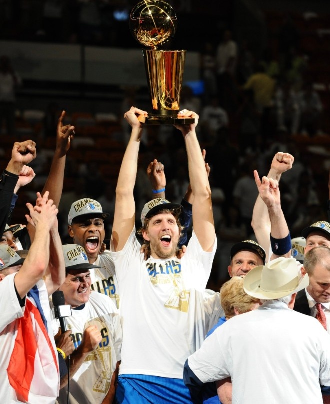 前NBA球员布兰登-海伍德晒出了小牛夺冠的照片,并写道:“挣来的而不是给予的。祝贺诺维茨基进入名人堂。”