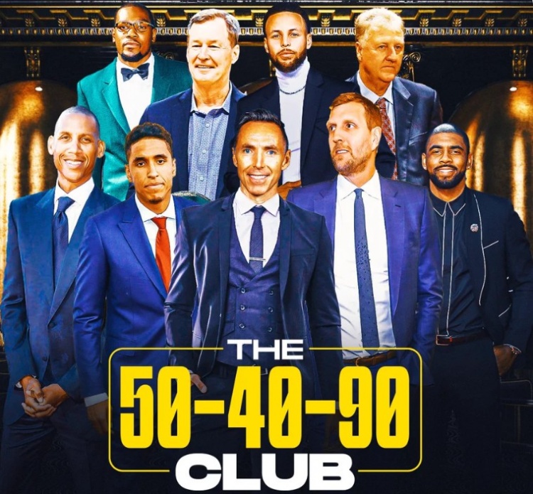8月15日讯 今天,美媒ClutchPoints晒出了NBA历史上单赛季打出过180(投篮命中率50%+、三分命中率40%+、罚球命中率90%+)俱乐部的球员,详情如下: