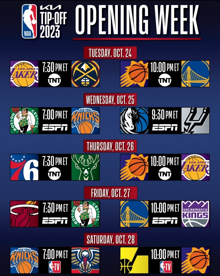 8月18日讯 今日,联盟公布了新赛季首周的赛程和直播计划。