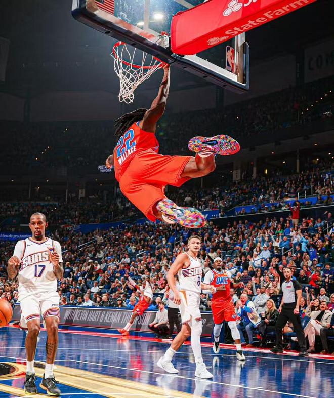 狂轰138:89,雷霆和太阳队的这场NBA杯8强赛,完全变成了一边倒的局面,虽然太阳队实力不强,但不得不说,雷霆队太恐怖了!雷霆队本场有6人得分上双,上场13人全部有得分进账,球队的进攻效率更是奇高,投篮命中率高达59.1%,3分球命中率也达到了夸张的55%,而且还投中了22记,外线集体开火!在内线得分,利用失误得分,篮板上同样占优,这场比赛,根本没有任何悬念!