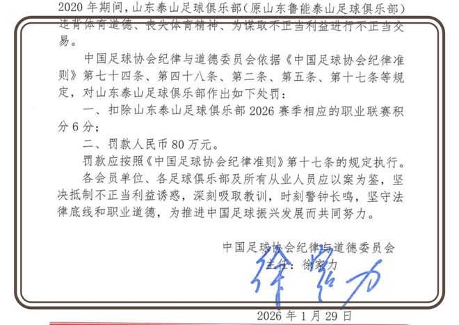 山东泰山被扣掉了6个联赛积分,同时被罚80万。作为专项整治的主要球队之一,这样的处罚已经完全可以接受了。从之前的首批处罚名单,再到如今的第二批,各种细节和问题全部曝光。