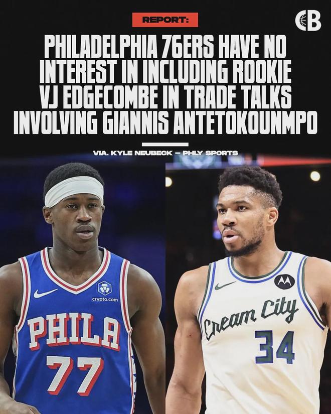 恩比德刚说完这段话,今天76人随队记者Kyle Neubeck爆料:“76人不会在任何交易中送走埃奇库姆,哪怕交易对象是字母哥。”这个很像是76人内部放出的消息,算是回应恩比德。恩比德、乔治、马克西全是大合同,很难再补强了。