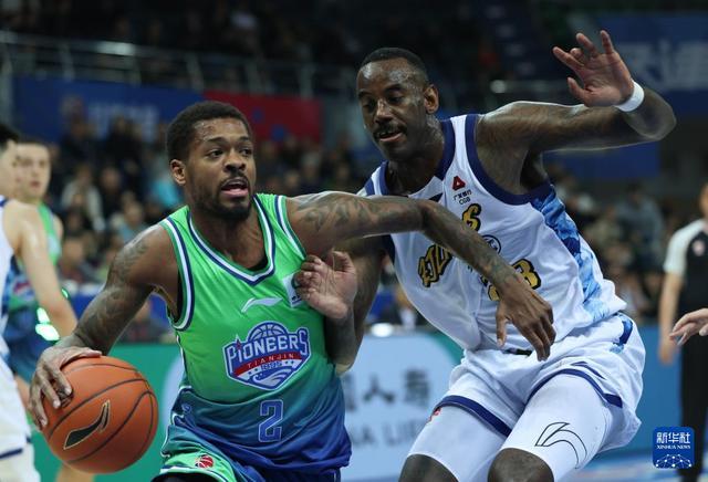 3月24日,天津先行者队球员贾维恩·哈姆雷特(左)与浙江浙商证券队球员吴骁在比赛中拼抢。新华社记者 孙凡越 摄