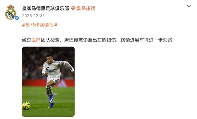 姆巴佩膝伤遭皇马误诊,医疗团队查错了腿,检查了他没受伤的右膝,而不是受了伤的左膝。