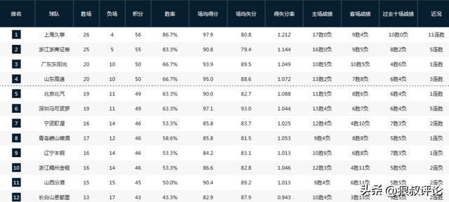 CBA排名:上海11连胜初露冠军相北京拒绝逆转四川创历史最长连败
